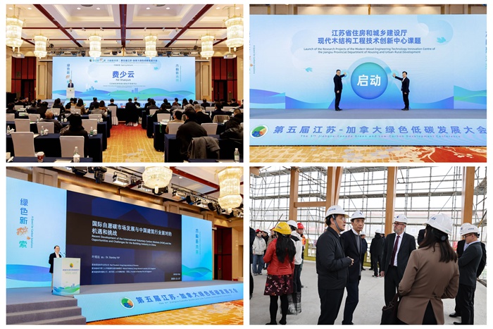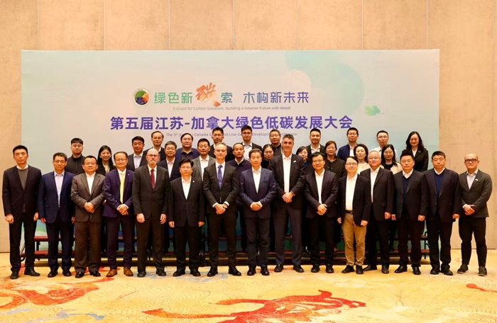 11月17日,“第五届江苏—加拿大绿色低碳发展大会”在无锡召开。省住房和城乡建设厅党组书记费少云、省林业局总工程师陈志银、加拿大驻上海总领事馆代总领事孔毅翔(Alexandre Cerat)到会致辞。省住房和城乡建设厅副厅长路宏伟、南京工业大学副校长陆伟东、加拿大BC省林业创新投资署首席执行官兼总裁罗敏柯(Michael Loseth)、加拿大木业集团总裁布鲁斯·圣约翰(Bruce St. John)等参加活动。